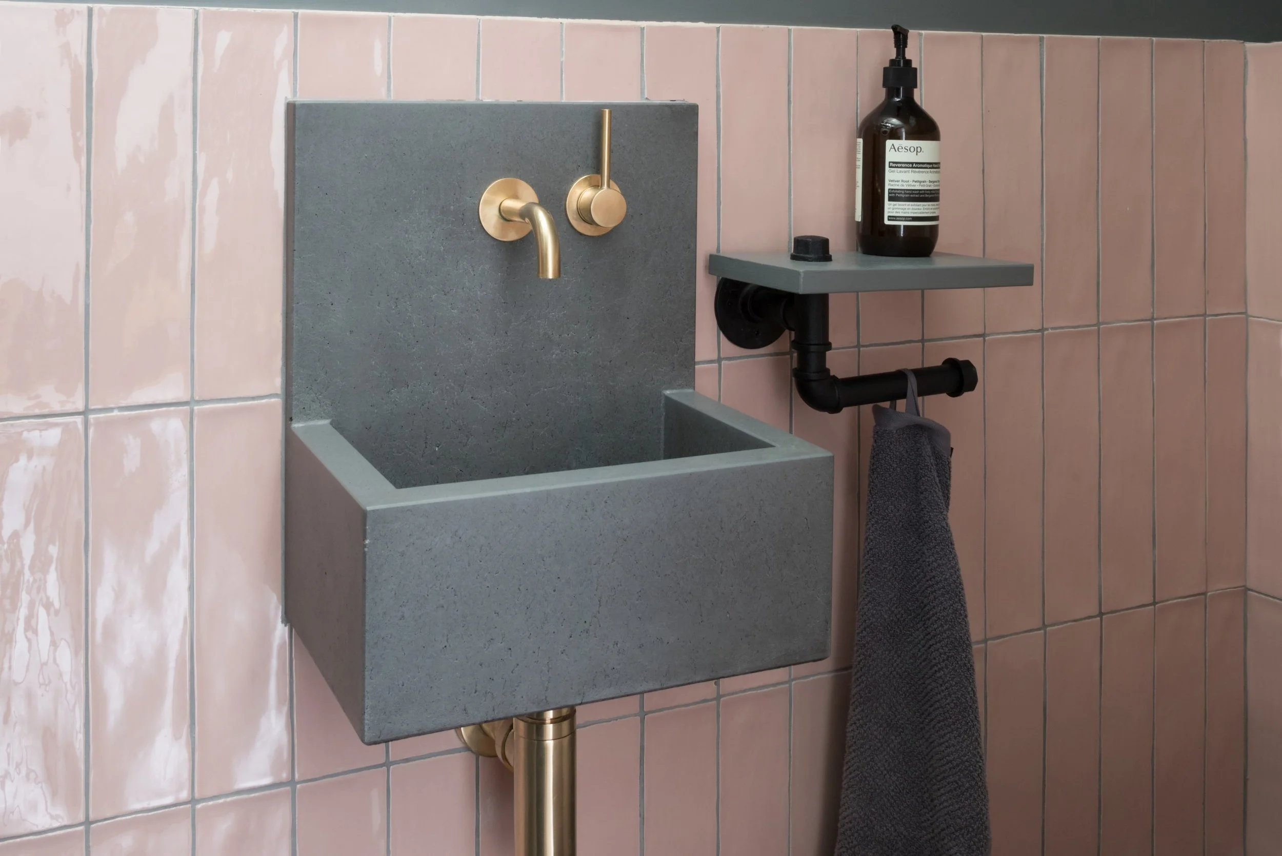 Style tip: Pair pale pink tiles with warm-toned brassware for a stylish look.