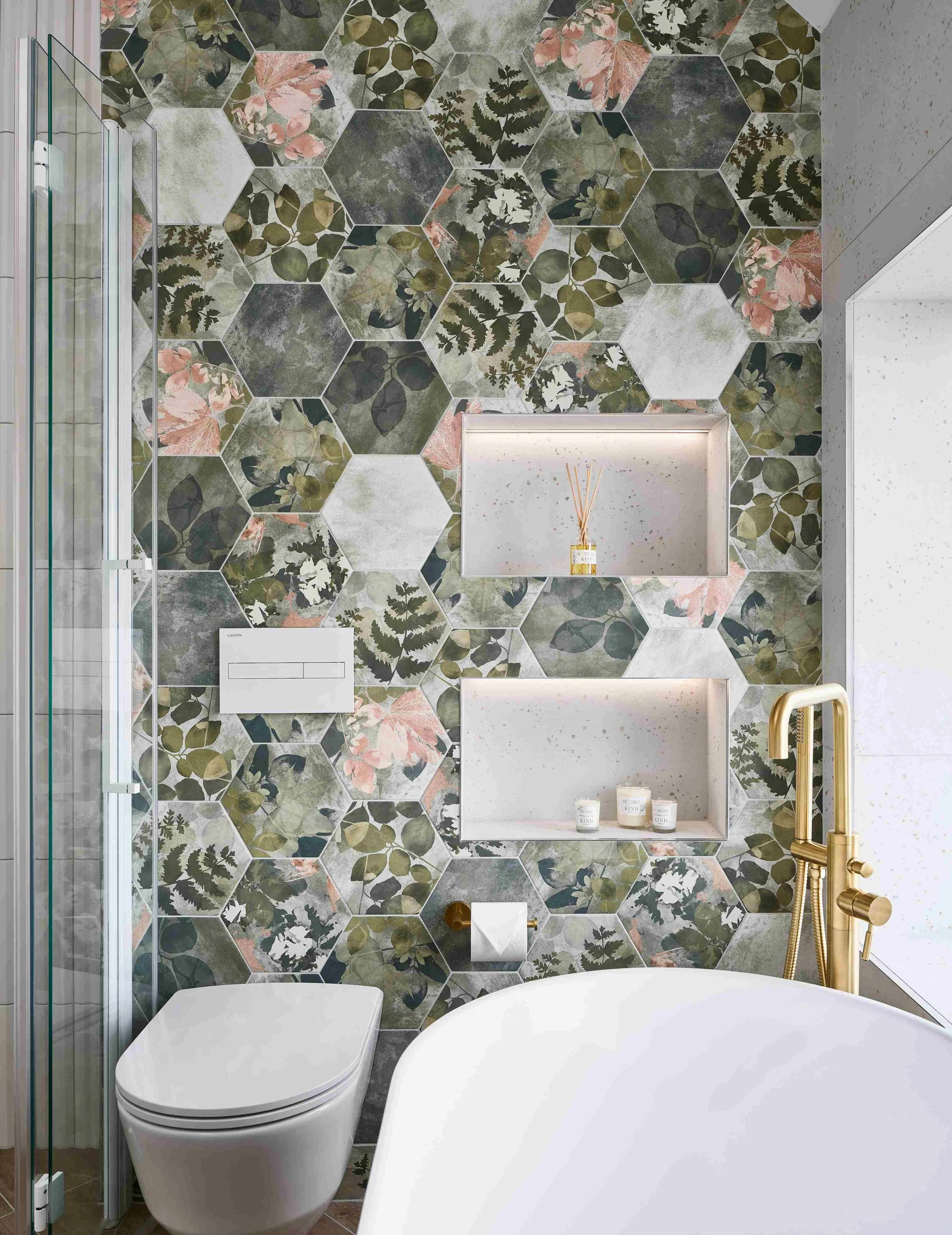 We’re seeing a huge trend for tiles inspired by nature, from dainty ditsy prints to bold botanicals and everything in-between. Tropical prints work wonderfully in cloakrooms as they are a fun talking point for any visiting guests. Opt for larger formats for your nature-inspired tiles as they not only look beautiful but also reduce grout lines making for easier cleaning and maintenance.